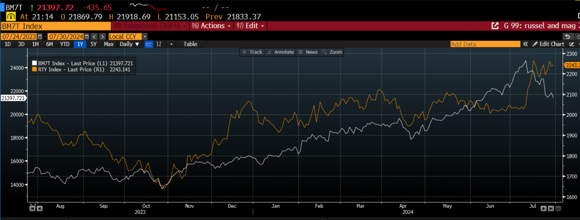 Chart 1: The Russel 2000 and the Magnificent 7 tech stocks