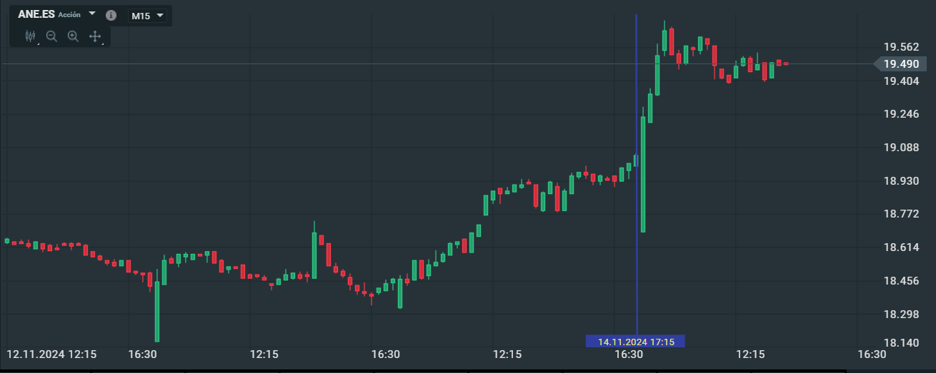 - Cotización de Acciona Energía (Velas de 15 minutos)
