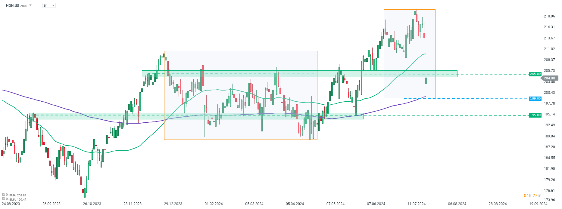 أطلقت شركة Honeywell International (HON.US) تداولاتها اليوم على انخفاض واستمرت في الانخفاض في بداية جلسة وول ستريت. ومع ذلك، فشل البائعون في اختراق الحد الأدنى لهيكل الفائض في منطقة 199 دولارًا، وبدأ السهم في التعافي بعد ذلك. المصدر: اكس ستيشن 5
