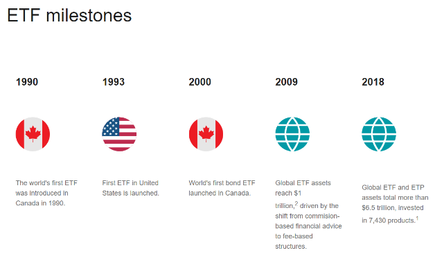 تزايدت شهرة صناديق الاستثمار المتداولة ETFs بشكل ملحوظ على مدى العقود الأخيرة. فقد استطاعت الحفاظ على مكانتها البارزة بين فئات الأصول العالمية الرئيسية منذ تأسيس أول صندوق للمؤشرات في عام ١٩٧٦ بواسطة جون بوجل من شركة فانجارد. بعد مرور ١٤ عامًا على تأسيس أول صندوق ETF لمؤشر S&P ٥٠٠ من قبل فانجارد، قدمت بورصة تورونتو للأوراق المالية أول صندوق متداول في البورصة. وبفضل هذه الصناديق، أصبح لدى ملايين المستثمرين حول العالم اليوم الفرصة للاستثمار في فئات الأصول المعروفة. سجلت (iShares) التابعة لشركة BlackRock، أكبر شركة إصدار لصناديق الاستثمار المتداولة، أرباحاً بقيمة مليار دولار بفضل ارتفاع تدفقات الاستثمار في هذه الصناديق. إنها استثمار متنوع ومبسط، قائم بذاته، دون تكاليف مرتفعة كما هو الحال في صناديق الاستثمار المشتركة. الآن، أصبح التعرض المباشر للأسواق العالمية أسهل من أي وقت مضى.