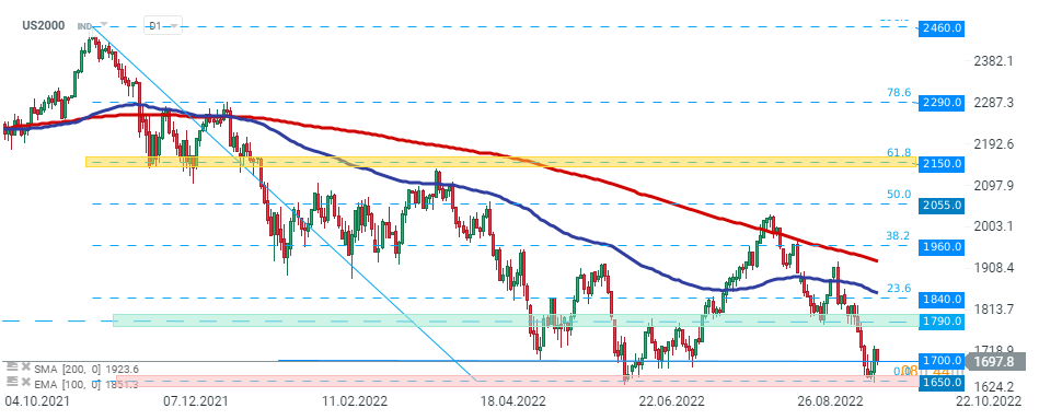 ارتفع مؤشر US2000 بشكل حاد يوم الأربعاء ، لكن المشترين فشلوا في الحفاظ على الزخم وانخفض المؤشر إلى ما دون مستوى 1700 نقطة ، محوًا غالبية مكاسب الأمس. اما إذا سادت المعنويات السلبية ، فقد يتعمق الاتجاه الهبوطي نحو مستوى الدعم الرئيسي عند 1650 نقطة ، حيث تقع قيعان من يونيو 2022. و من ناحية أخرى ، إذا تمكن الثيران من استعادة السيطرة ، فقد ينطلق الدافع الصعودي نحو المقاومة عند 1790 نقطة ، والتي تتميز بردود فعل سعرية سابقة. المصدر: xStation5