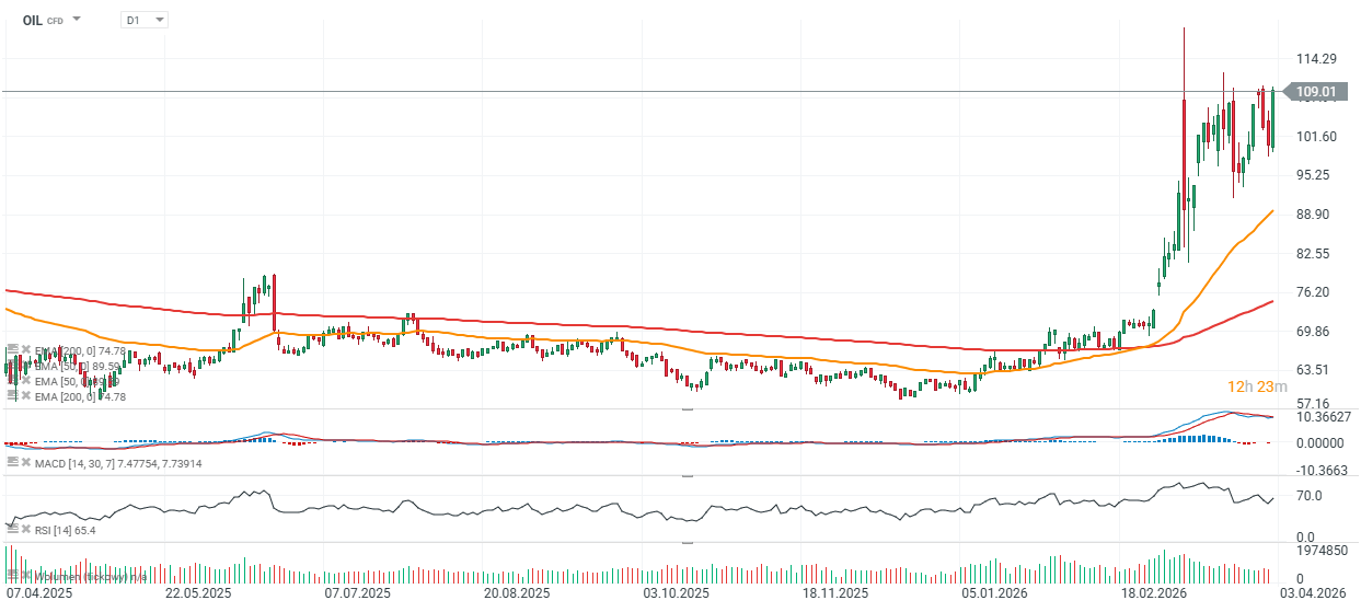 - لا يزال سوق النفط يتعرض لضغوط جيوسياسية قوية. ارتفعت الأسعار لتتجاوز 110 دولارات للبرميل بعد أن وجّه دونالد ترامب تهديدات جديدة ضد البنية التحتية الإيرانية، بهدف زيادة الضغط على طهران خلال المفاوضات.
