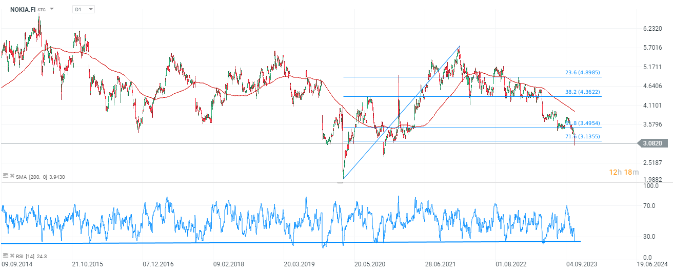 تتعرض أسهم شركة تصنيع الهواتف الذكية والتكنولوجيا نوكيا (NOKIA.FI) لضغوط اليوم حيث كانت الشركة مخيبة للآمال بسبب نتائجها. وانخفض صافي الدخل بنسبة 69% على أساس سنوي.
