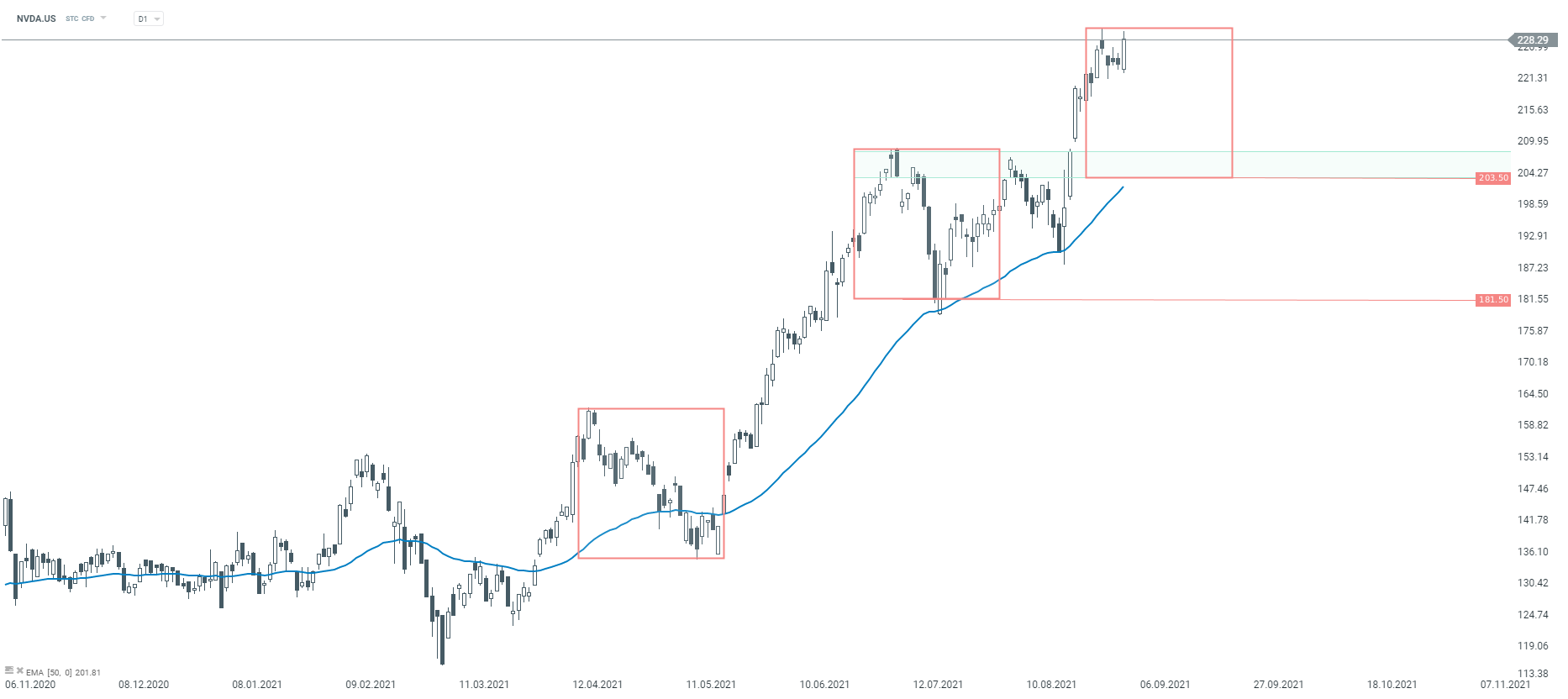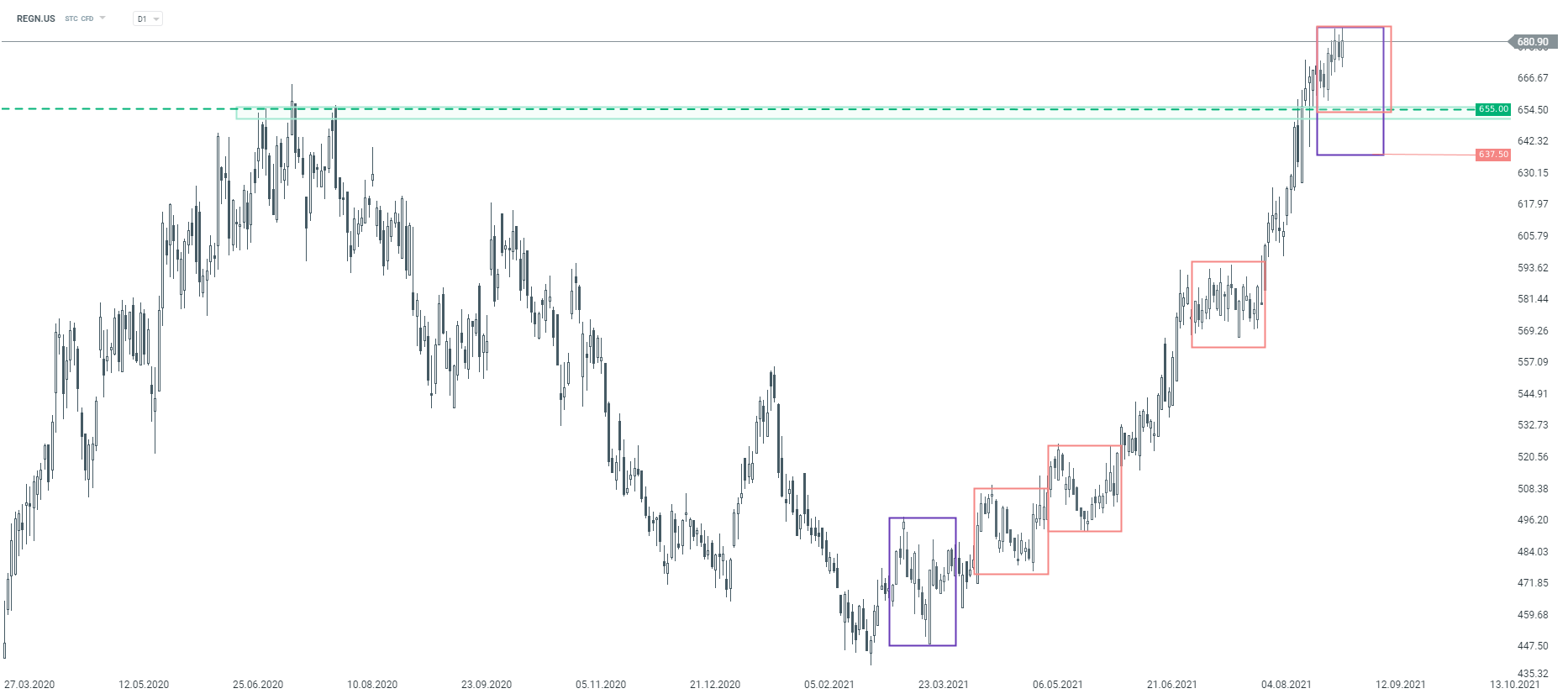 تم تداول السهك في نمط مثلث تصاعدي طوال النصف الأول من العام ، والذي كان محدودًا بـمتوسط المتحرك الأساسي 100 جلسة (الحد الأدنى) ومنطقة سعر 633 دولارًا (الحد الأعلى). بعد الاختراق فوق مستوى 633 دولارًا ، تسارعت الحركة الصعودية. المصدر: xStation5