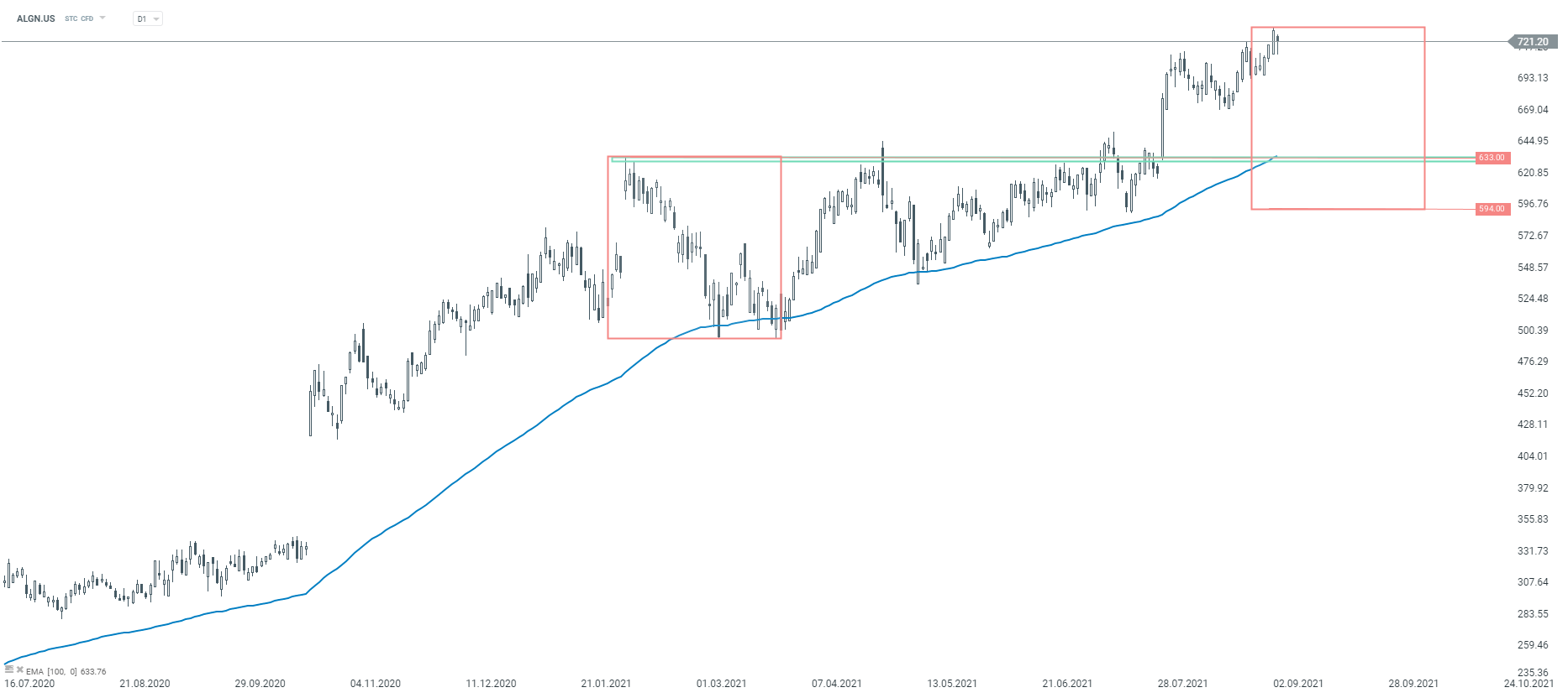 هي شركة مصنعة للأجهزة الطبية تنتج ماسحات ضوئية ثلاثية الأبعاد واجهزة تستخدم في عملية تقويم الأسنان. شهدت الشركة قفزة هائلة في إيرادات الربع الثاني ، حيث زادت المبيعات من 352.3 مليون دولار في الربع الثاني من عام 2020 إلى 1.018 مليار دولار في الربع الثاني من عام 2021. ووصلت ربحية السهم إلى 2.72 دولارًا أمريكيًا ، بعد أن كانت خسارة السهم الواحد 0.51 دولار أمريكي في الربع الثاني من عام 2020. وتجاوزت توقعات السوق في جميع المقاييس الرئيسية