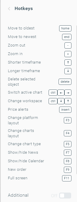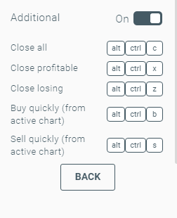 بالنسبة لمفاتيح الاختصارات المتعلقة بفتح الصفقات وإغلاقها لا يتم تفعيلها بشكل افتراضي، حتى لا يتم استخدامها عن طريق الخطأ.