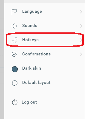 ثم اختار "مفاتيح الاختصارات" ‘Hotkeys’: