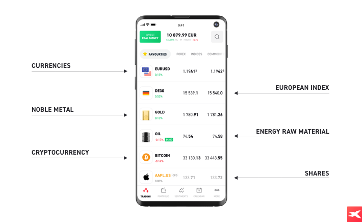 يمكن لكل من المتداولين المبتدئين وذوي الخبرة استخدام الرافعة المالية لتداول على عقود الفروقات على جميع فئات الأصول المالية. هذا يعني أن التداول بالرافعة المالية متاح للعقود مقابل الفروقات على أزواج العملات، السلع، مؤشرات الأسهم، العملات المشفرة، السندات، صناديق الاستثمار المتداولة وأسهم الشركات. تشمل الأدوات ذات الرافعة المالية الأكثر شيوعًا أزواج العملات الرئيسية مثل: اليورو دولار، الجنيه الاسترليني مقابل الدولار، الدولار مقابل الين والسلع مثل: الذهب (GOLD)، النفط الخام (OIL.WTI) والقهوة (COFFEE) أو مؤشرات الأسهم مثل مؤشر داكس (DE30)، اس ان بي 500 (US500)، ومؤشر ناسداك (US100)، أو العملات المشفرة مثل البيتكوين و إيثيريوم، كذلك عقود الفروقات على الأسهم مثل أسهم فيسبوك، امازون والكثير من أسهم الشركات الكبرى.