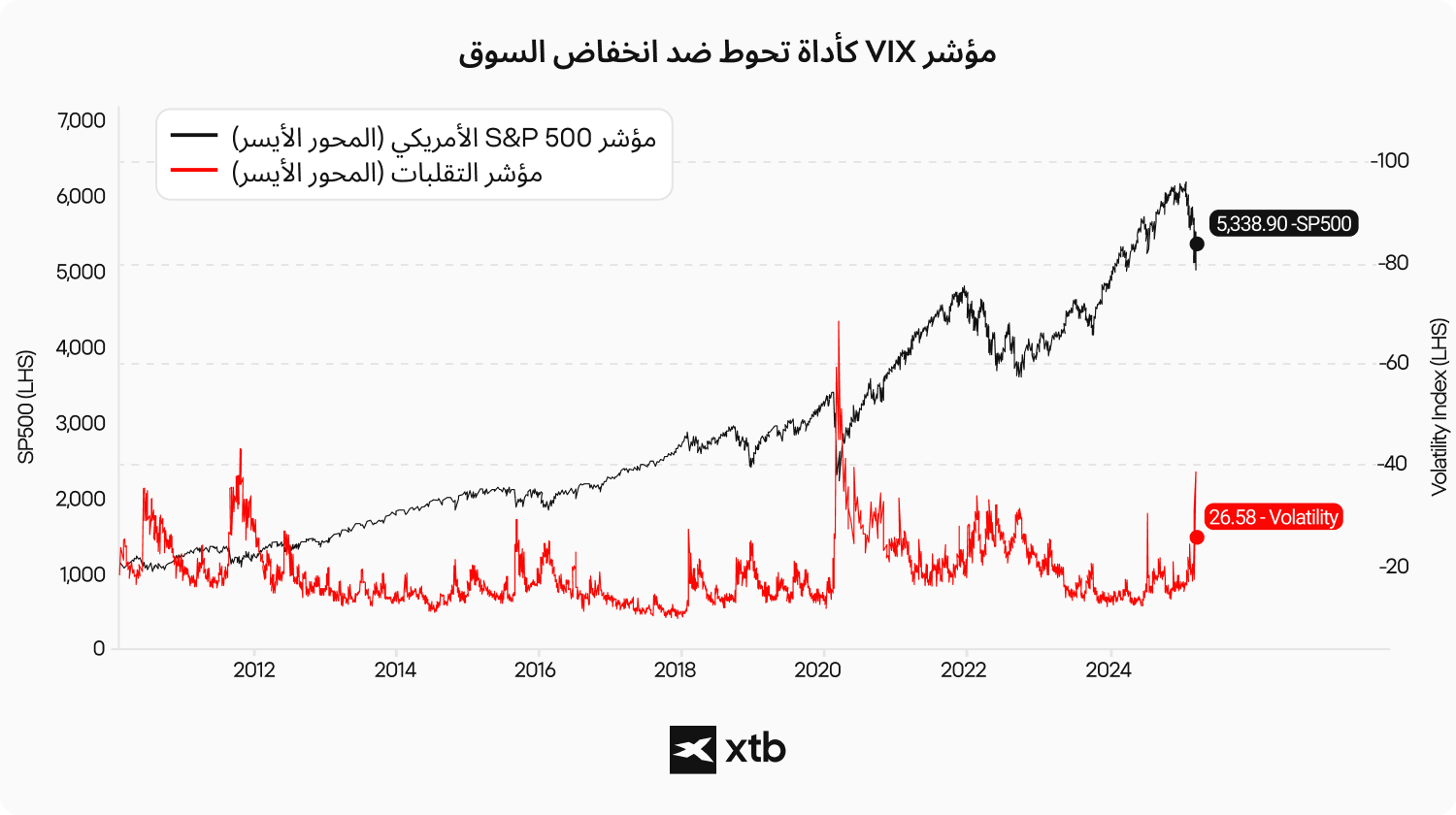 - ارتفاع مؤشّر التقلّب (VIX) = خوف، أو تحوط، أو تقلبات قادمة