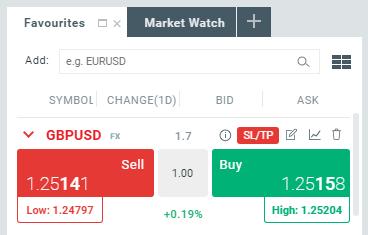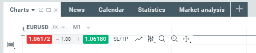 بعد ان تقوم بتحليل سوق معين وترغب في فتح صفقة تداول يمكنك هذا من خلال أزرار البيع والشراء الموجودة في الركن الأيسر العلوي من الرسم البياني مع خيار تعديل حجم الصفقة كذلك.