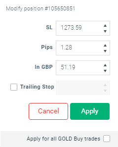 - إيقاف الخسارة المتحرك: امكانية تفعيل وإيقاف أمر وقف الخسارة المتحرك، وذلك لأوامر وقف الخسارة فقط