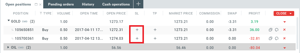 يمكنك التحكم في مستويات إيقاف الخسارة وجني الأرباح من خلال تبويب "الصفقات المفتوحة" ‘Open positions’.