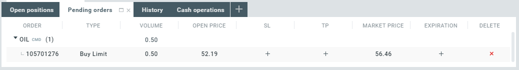 إذا قمت بتعيين أوامر تداول معلقة فيمكنك تعديلها أو حذفها من خلال نافذة الأوامر المعلقة ‘pending order’.
