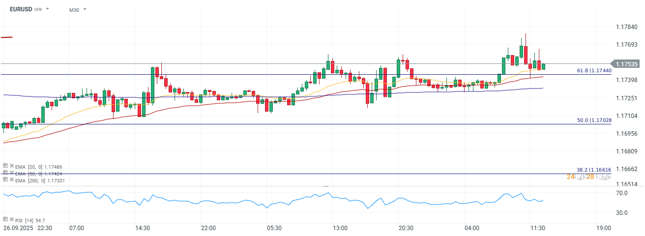 يُبرر الارتفاع الطفيف في ديناميكيات التضخم نهاية دورة تخفيف البنك المركزي الأوروبي، حيث يستقر زوج اليورو/دولار أمريكي حاليًا بين المتوسط المتحرك الأساسي 10 (EMA10) والمتوسط المتحرك الأساسي 30 (EMA30) على الفاصل الزمني M30 (حوالي 1.175).