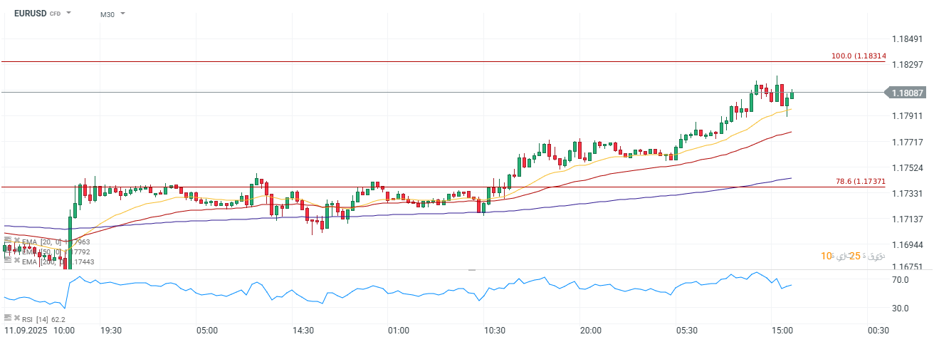 زوج اليورو مقابل الدولار الأميركي يتجاهل تقريبًا البيانات الاقتصادية القوية في الولايات المتحدة اليوم (مبيعات التجزئة والإنتاج) حيث ارتفع بنحو 0.4%