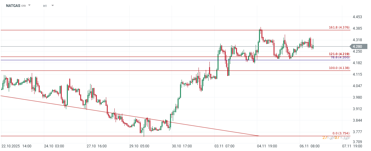في أول رد فعل على بيانات إدارة معلومات الطاقة الأمريكية، انخفض الغاز الطبيعي حيث أظهرت البيانات انخفاض الطلب وتراكم المخزونات على الرغم من بداية موسم التدفئة.