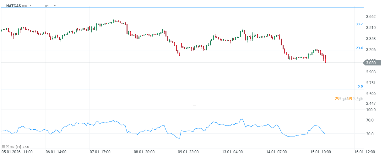 أظهرت بيانات وزارة الطاقة الأمريكية لمخزونات الغاز الطبيعي تراجعًا أقل من المتوقع، حيث سجل التقرير انخفاضًا فعليًا بمقدار -71 بليون قدم مكعب مقارنةً بالتوقعات التي كانت تشير إلى -89 وبالمقارنة مع الانخفاض السابق -119. هذا يعني أن المخزونات لم تنخفض بالقدر المتوقع، ما قد يشير إلى توافر أكبر للغاز في السوق من المتوقع. عادةً، انخفاض المخزونات يدعم الأسعار، ولكن هنا الانخفاض الأقل من المتوقع قد يضغط على الأسعار قليلًا على المدى القصير، نظرًا لإشارة البيانات إلى وفرة نسبيّة أكبر.