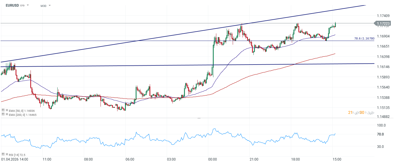 زوج اليورو/الدولار الأمريكي (M1)