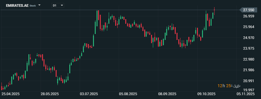 الجدير بالذكر أنه سجل أكبر بنوك دبي من حيث الأصول صافي أرباح بقيمة 6.4 مليار درهم أو ما يعادل 1.74 مليار دولار في الربع المنتهي في 30 سبتمبر الماضي متجاوزا توقعات المحللين البالغة 5.54 مليار درهم وفقا لمتوسط تقديرات جمعتها مجموعة بورصات لندن.