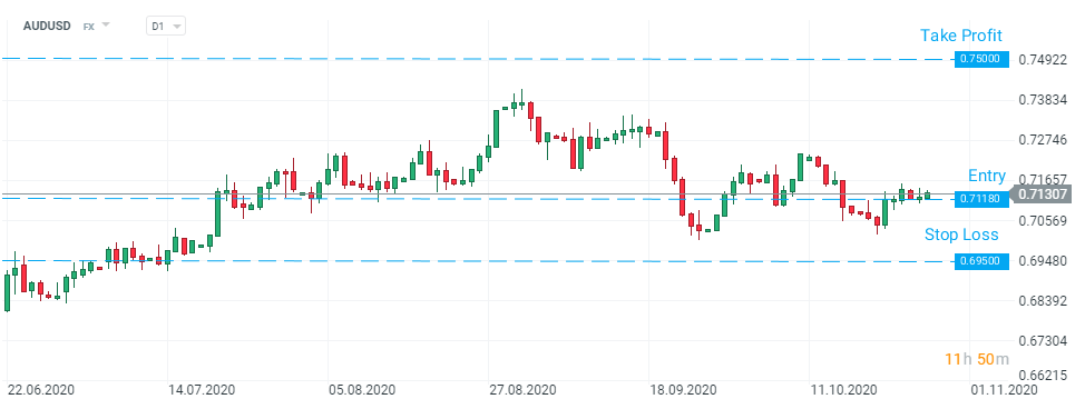 يوصي بنك مورغان ستانلي بشراء زوج AUDUSD بسعر 0.7118 و استهداف 0.7500 ووضع أمر وقف خسارة عند 0.6950. المصدر: xStation5