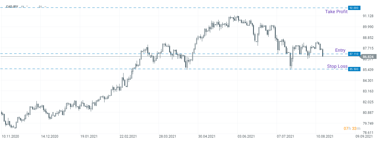 يوصي بنك مورجان ستانلي بشراء زوج CADJPY بسعر87.110 واستهداف 92.000 و وضع أمر وقف الخسارة عند 85.500. المصدر: xStation5