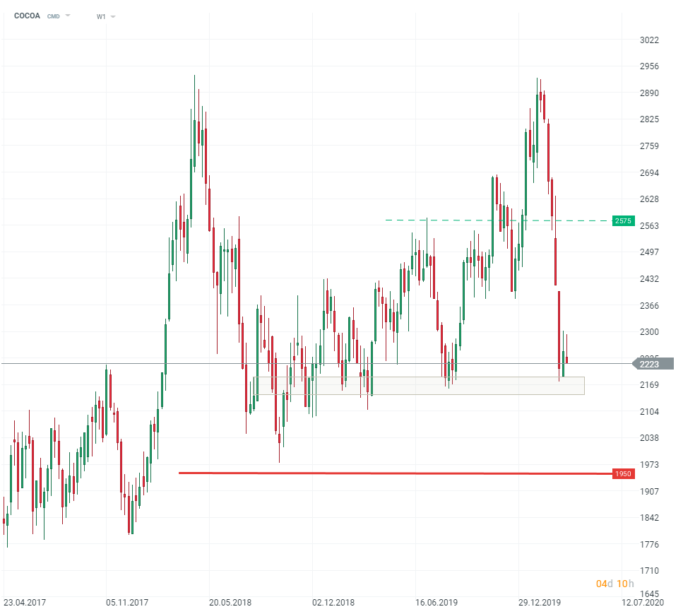 انخفضت أسعار الكاكاو بشكل حاد في مارس بسبب ضغط السيولة التي أجبرت التجار على الخروج من السوق. وقد تسبب هذا في انخفاض كبير في الأسعار. الآن وقد تحسنت ظروف السيولة تدريجيًا ، يمكن استعادة ذلك وسيساعد على إزالة السعر من منطقة الدعم 2،150 دولارًا. من الواضح أن الوباء يؤثر على الكاكاو ، وقد يتأثر الطلب ، ولكن يمكن أن يتأثر الحصاد أيضًا بالإغلاق. أحد العوامل الرئيسية التي يجب مراعاتها هو الحظر المحتمل على واردات الولايات المتحدة من ساحل العاج (المتعلقة بعمل الأطفال). نظرًا لأن العقود مقابل الفروقات تستند إلى عقود تسليم آجلة إلى الولايات المتحدة ، فإن هذا الحظر - إذا تم تنفيذه - سيكون صعوديًا للغاية.