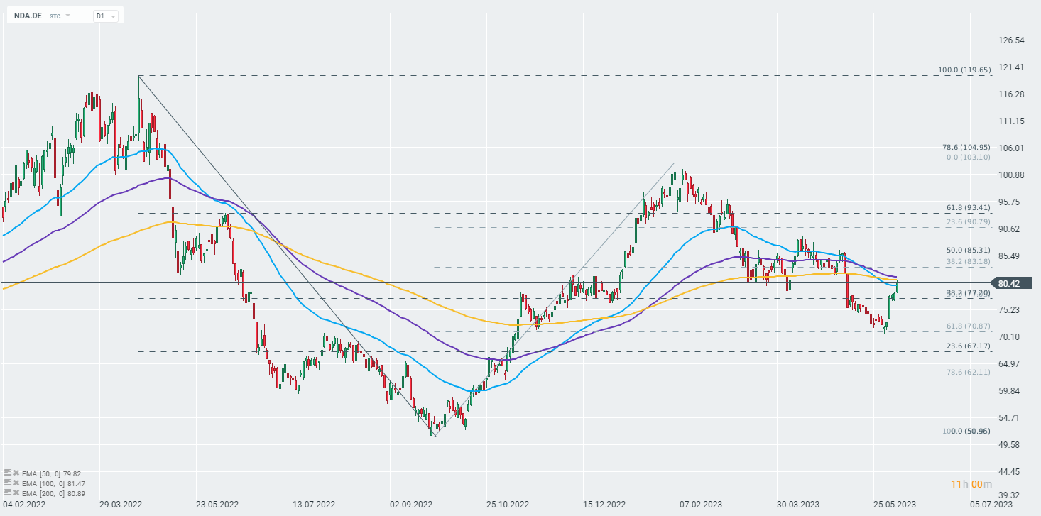 مخطط لسعر سهم Aurubis (NDA.DE). الفاصل الزمني D1. المصدر: xStation5