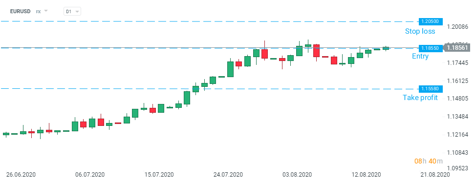 يوصي بنك كريدي أجريكول ببيع زوج EURUSD بسعر 1.1855 واستهداف 1.1558 و وضع أمر وقف الخسارة عند 1.2050. المصدر: xStation5