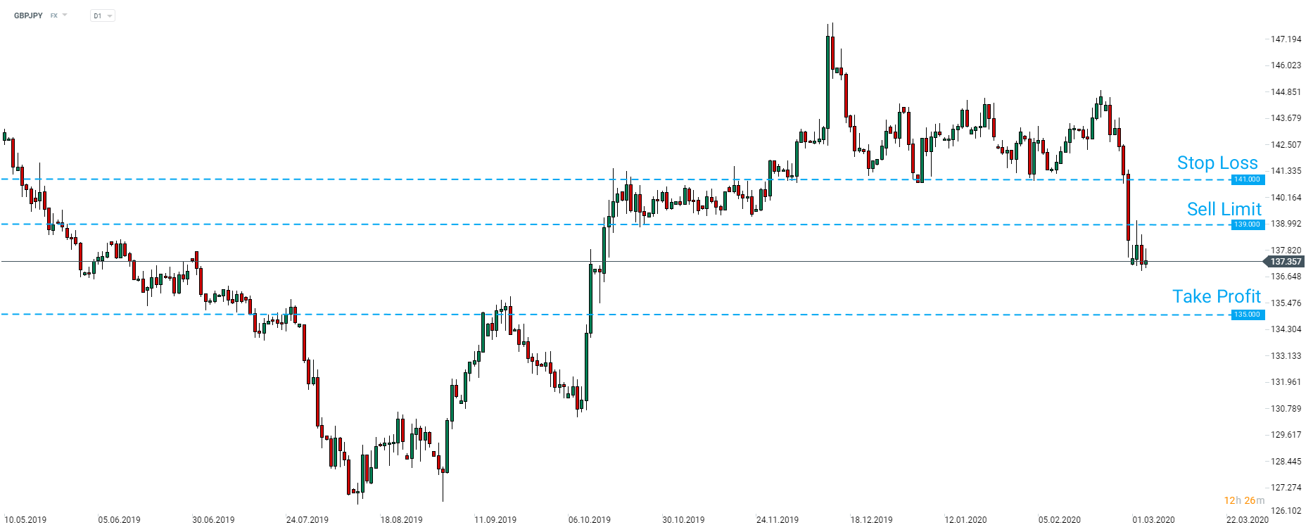 يوصي البنك بصفقة بيع معلقة على زوج العملات بالمستويات التالية: