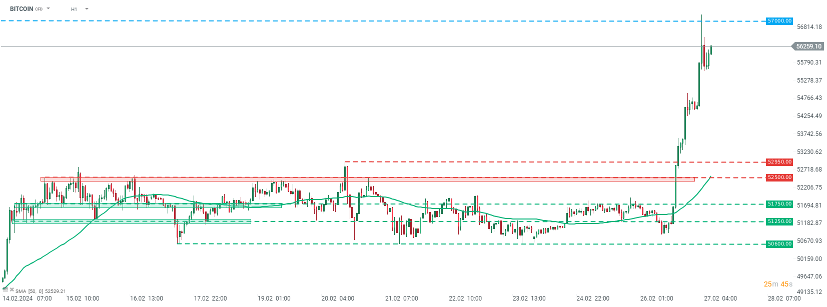 واصلت عملة البيتكوين مكاسب الأمس وارتفعت فوق مستوى 57000 دولار خلال جلسة آسيا والمحيط الهادئ اليوم ومع ذلك، فقد تراجعت العملة بحوالي 1000 دولار من أعلى مستوياتها في وقت لاحق.