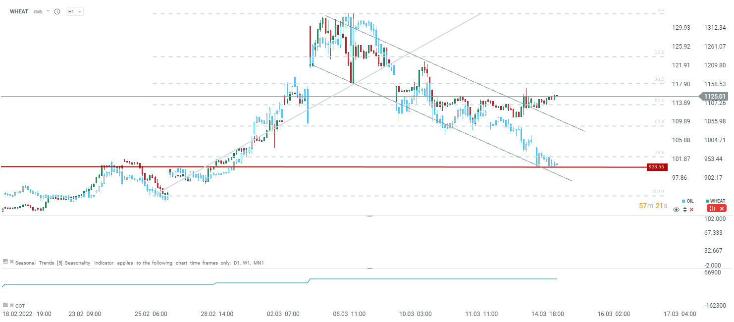 يستمر سعر القمح في الارتفاع بسبب عدم اليقين بشأن موسم الحصاد. من ناحية أخرى ، فإن التكاليف النسبية (أسعار النفط) آخذة في الانخفاض ، مما يخلق تباعدًا واضحًا. يجب على المرء أيضًا أن يتذكر حظر تصدير الأسمدة من روسيا ، والذي قد يؤدي إلى ارتفاع تكاليف الإنتاج. المصدر: xStation5
