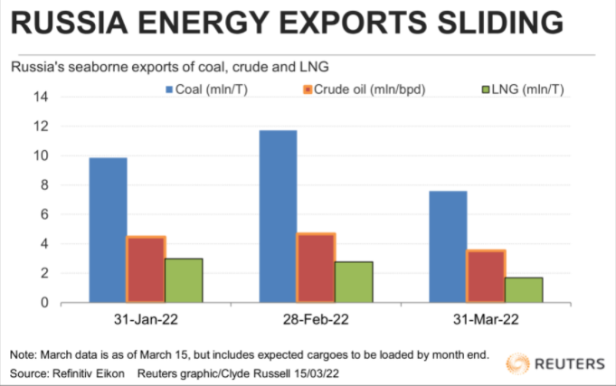 - تراجع الصادرات من روسيا واضح بالفعل ، بناءً على حسابات رويترز (رسم بياني)