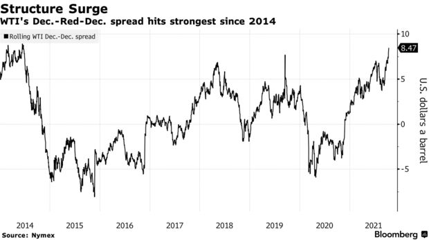 The difference in 12-month contracts already exceeded $ 8 a barrel, which in the past indicated a "peak" in short-term demand. Source: Bloomberg