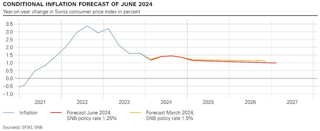 - يتوقع البنك المركزي السويسري أن يصل التضخم لعام 2024 إلى 1.3% (التوقعات السابقة كانت 1.4%).