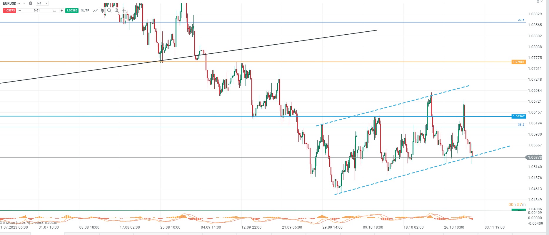 اليورو لا زال عند نفس المستويات قبل القرار و ما زال يبحث عن اتجاه , و يمكن ان يستمر في الهبوط اذا صرح جيروم باول بشكل ايجابي للدولار.