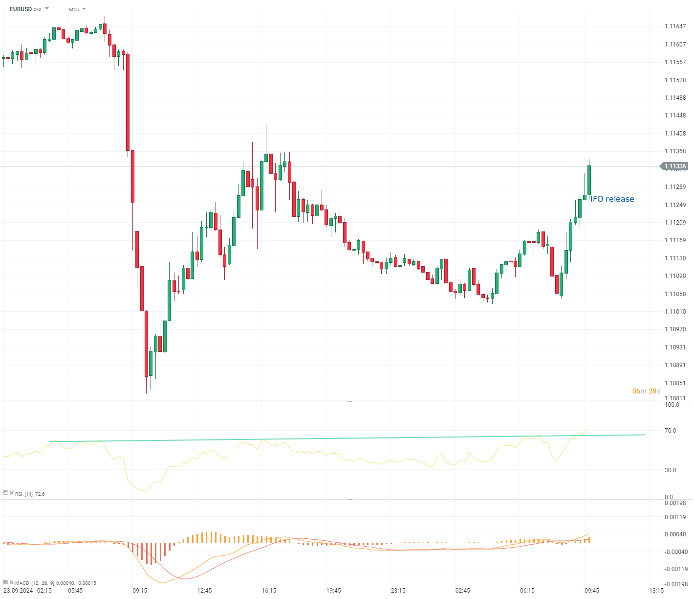 أصدر معهد IFO الألماني أحدث مجموعة من مؤشرات المشاعر اليوم في الساعة 9:00 صباحًا بتوقيت جرينتش. وكان من المتوقع أن تظهر بيانات أغسطس انخفاضًا في مؤشر مناخ الأعمال الرئيسي من 86.6 إلى 86، مع توقع انخفاض كل من المؤشرات الفرعية - الظروف الحالية والتوقعات.