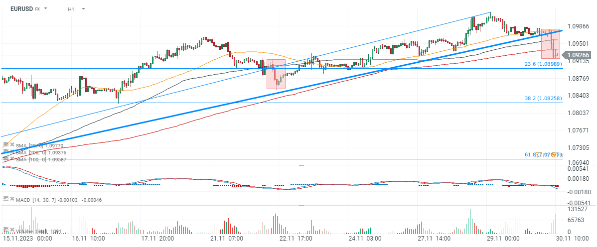 بلغت قراءات التضخم الأولية لمؤشر أسعار المستهلك (لشهر نوفمبر 2023) من منطقة اليورو 2.4% مقابل 2.7% المتوقعة. و2,9% سابقاً