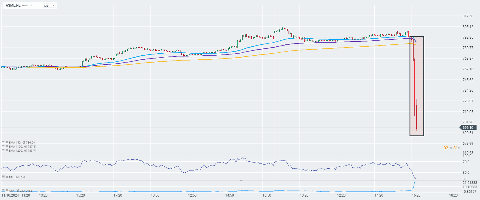 قبل نهاية الجلسة الأوروبية بقليل، أعلنت شركة ASML عن نتائجها. وخسرت أسهم الشركة ما يقرب من 11% بعد أن جاءت حجوزات الشركة أقل بكثير من التوقعات، على الرغم من أن مقاييس الأرباح الأخرى لم تكن سيئة للغاية.