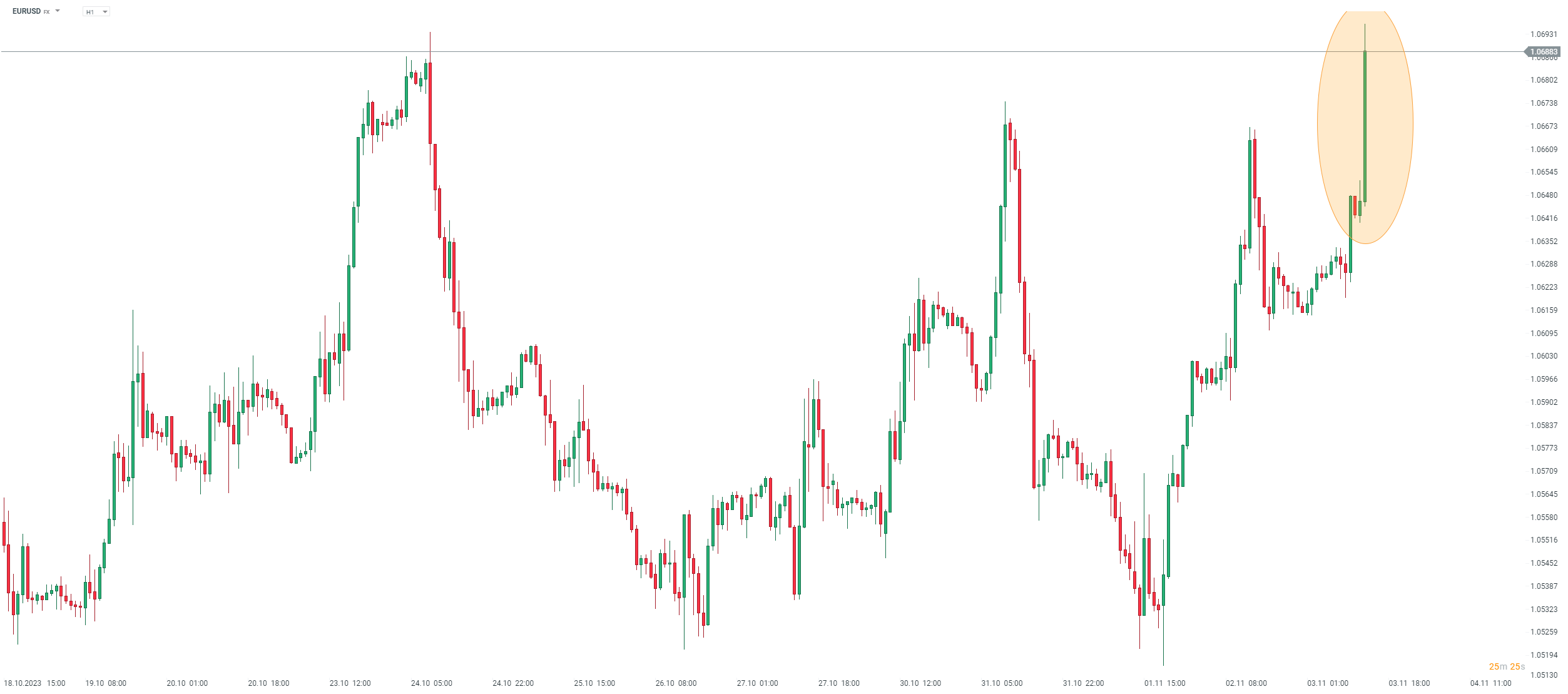 كان تقرير الوظائف غير الزراعية الأمريكي، المقرر صدوره في الساعة 12:30 ظهرًا بتوقيت جرينتش، بمثابة إصدار رئيسي لليوم. وكان من المتوقع أن تظهر البيانات زيادة بمقدار 180 ألف وظيفة بالإضافة إلى تباطؤ نمو الأجور السنوية. وبينما أشارت التوقعات إلى خلق فرص عمل أضعف مما كان عليه في سبتمبر، فإن قراءة 180 ألفًا ستظل قراءة أعلى من المتوسط. ومع ذلك، أشارت إصدارات سوق العمل الأمريكية الأخرى، مثل مؤشر التوظيف الفرعي ISM للخدمات أو تقرير ADP، إلى أن سوق العمل الأمريكي قد يكون في حالة تباطؤ.