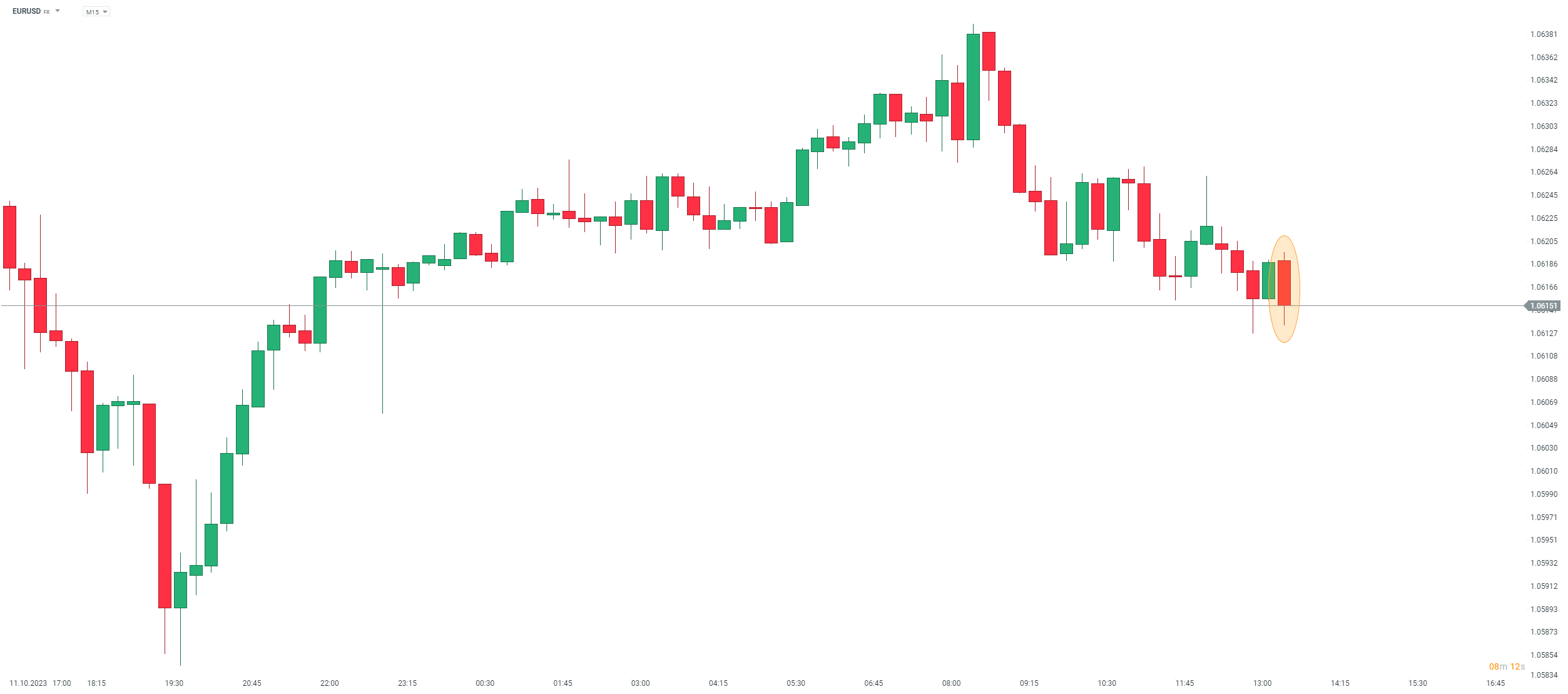 انخفض اليورو مقابل الدولار الأميركي بعد صدور محضر اجتماع البنك المركزي الأوروبي ولكن نطاق الحركة لم يتجاوز 0.1%. المصدر: اكس ستيشن 5