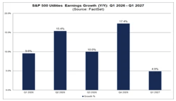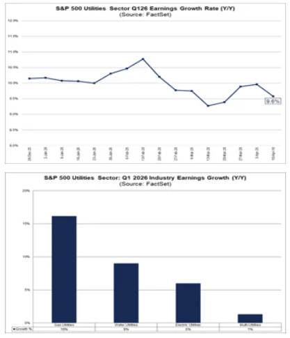 يدخل قطاع المرافق موسم الإعلان عن الأرباح بواحد من أقوى مؤشرات النمو في مؤشر ستاندرد آند بورز 500، مع نمو متوقع في الأرباح بنسبة 9.6% على أساس سنوي. وبالمقارنة مع قطاع الطاقة، يُعد هذا النمو أكثر استقرارًا وتوزيعًا على نطاق أوسع، حيث يُتوقع أن تُساهم فيه جميع المجموعات الصناعية الرئيسية.