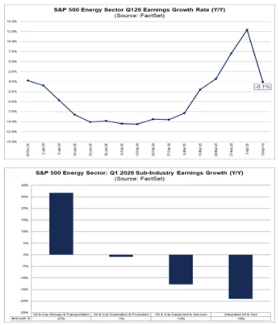 يُبرز بدء موسم إعلان أرباح الربع الأول من عام 2026 تباينًا واضحًا بين قطاعي الطاقة والمرافق ضمن مؤشر ستاندرد آند بورز 500. ففي قطاع الطاقة، لا يزال التوتر قائمًا بين بيئة أسعار النفط الداعمة وتراجع التوقعات لبعض أكبر الشركات. في المقابل، تبقى المرافق من أكثر قطاعات السوق استقرارًا، مستفيدةً من خصائصها الدفاعية ومن ارتفاع الطلب على الكهرباء بشكل هيكلي.