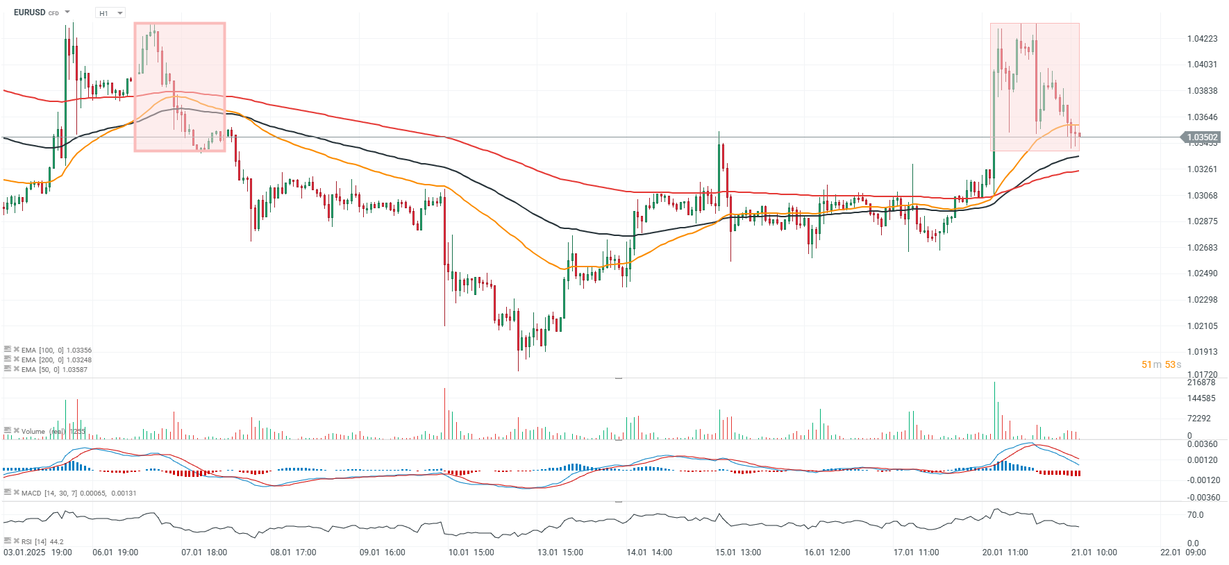 ارتفع مؤشر الدولار الأمريكي (USDIDX) اليوم وانخفض زوج اليورو مقابل الدولار الأمريكي حيث يعتزم دونالد ترامب فرض تعريفات جمركية بنسبة 25٪ على المكسيك وكندا، اعتبارًا من 1 فبراير. كانت الأسواق المالية سعيدة أمس، وضعف الدولار الأمريكي قليلاً وسط غياب التعريفات الجمركية الواسعة النطاق الفورية على جميع الشركاء التجاريين، لكن الإجراءات المستقبلية المحتملة لا تزال غير مؤكدة، وخاصة فيما يتعلق بسياسة التعريفات الجمركية مع الصين والدول الأوروبية.