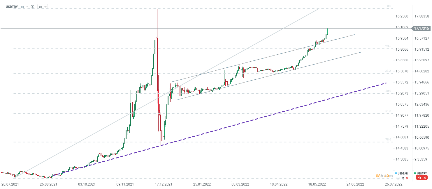 تستمر الليرة التركية في خسارة فادحة وهي قريبة جدًا من المستويات المرتفعة التاريخية عند النظر إلى زوج USDTRY. القرار التالي سيكون في غضون أسبوعين فقط ، لكن أردوغان أشار بالفعل هذا الأسبوع مرة أخرى إلى أنه يتوقع مزيدًا من التخفيضات في أسعار الفائدة ، من المستوى الحالي البالغ 14٪. تذكر أن التضخم في تركيا اخترق المستوى التالي وفي مايو وصل بالفعل إلى 73.5٪ على أساس سنوي.