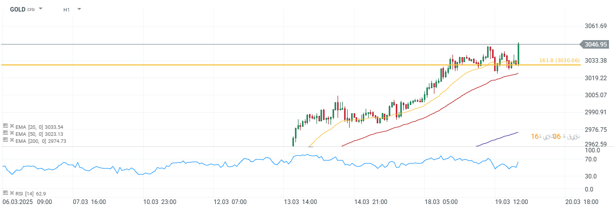 ارتفع سعر الذهب إلى أعلى مستوى له على الإطلاق اليوم، قريبًا من مستوياته من صباح اليوم، عند 3045 دولارًا للأونصة. وبشكل عام، كانت تصريحات باول أكثر تشددا من بيان بنك الاحتياطي الفيدرالي.