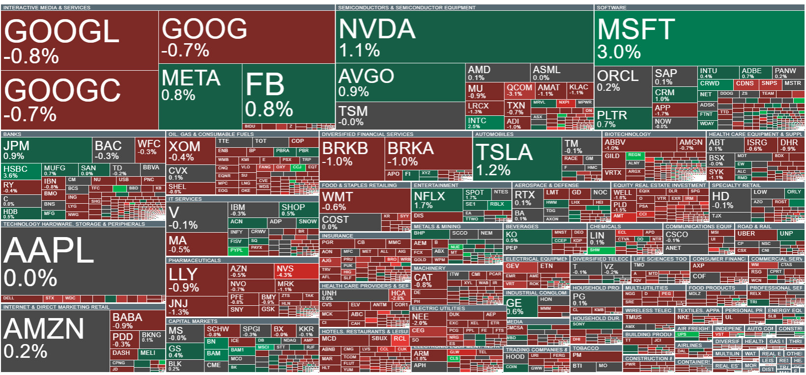 - ارتفعت أسهم مايكروسوفت (MSFT.US) بأكثر من 3% بعد إعلانها عن شراكة موسعة مع OpenAI. تدعم مايكروسوفت تحول OpenAI إلى منظمة ذات منفعة عامة، وتزيد استثمارها في الشركة، التي تُقدر قيمتها حاليًا بحوالي 135 مليار دولار. تُبرز هذه الخطوة الاستراتيجية التزام مايكروسوفت بتطوير الذكاء الاصطناعي ودمجه في منتجاتها، وهو ما لاقى استحسانًا كبيرًا في السوق.