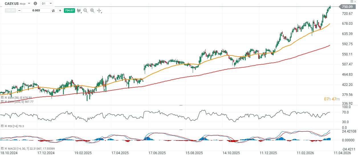 مخطط متاجر كيسي العامة (الإطار الزمني اليومي)