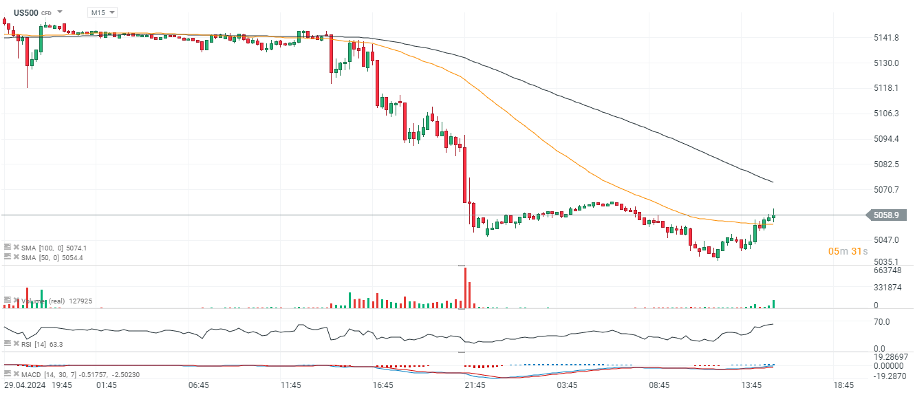 بعد الافتتاح، تحاول وول ستريت التعافي من عمليات البيع التي شهدتها يوم أمس، لكن انتعاش عقود مؤشر ناسداك 100 لا يساعده ضعف المعنويات حول أسهم التكنولوجيا. نتائج الشركة المصنعة لأرفف الخوادم المستخدمة في مراكز البيانات، Super Micro Computer (SMCI.US)، كانت بمثابة خيبة أمل، مما أدى إلى خصم مكون من رقمين للسهم، والذي يعتبره الكثيرون إلى جانب Nvidia (NVDA.US) أحد أقوى الشركات معايير سوق الذكاء الاصطناعي الصاعد بأكمله. بعد صدور تقرير ADP الأقوى من المتوقع، ينتظر المستثمرون صدور تقرير ISM التصنيعي وJOLTS (الساعة 4 مساءً)، بالإضافة إلى قرار بنك الاحتياطي الفيدرالي (الساعة 8 مساءً) ومؤتمر باول (الساعة 8:30 مساءً). يخسر الدولار قليلاً عند افتتاح الجلسة، مع انخفاض تداول USDIDX بنسبة 0.1% وخسارة النفط بنسبة 0.8% تقريبًا على الرغم من تصريحات رئيس الوزراء الإسرائيلي نتنياهو، الذي نقل بعد اجتماعه مع بلينكن أن التخلي عن المزيد من الحرب في غزة (رفح) ليس أمرًا جيدًا. في بؤرة إسرائيل.