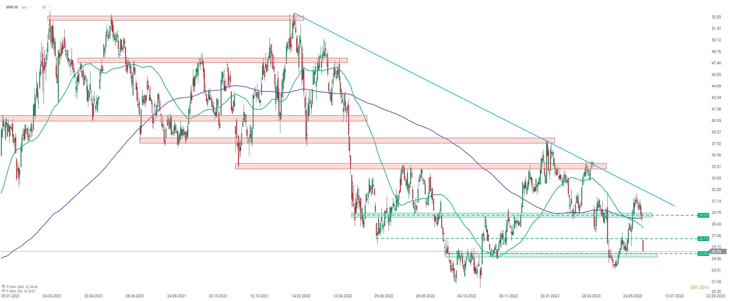 أطلقت أسهم Spirit AeroSystems Holdings (SPR.US) تداول اليوم بفجوة سعرية هبوطية كبيرة ، متراجعة إلى ما دون منطقة الدعم البالغة 29.50 دولارًا. قالت شركة وأحد أكبر موردي بوينج إنها ستعلق عملياتها حيث قرر العمال النقابيون الإضراب. يمكن العثور على المستوى التالي الذي يجب مراقبته في حال تعمق التراجع عند 25.00 دولارًا. المصدر: xStation5