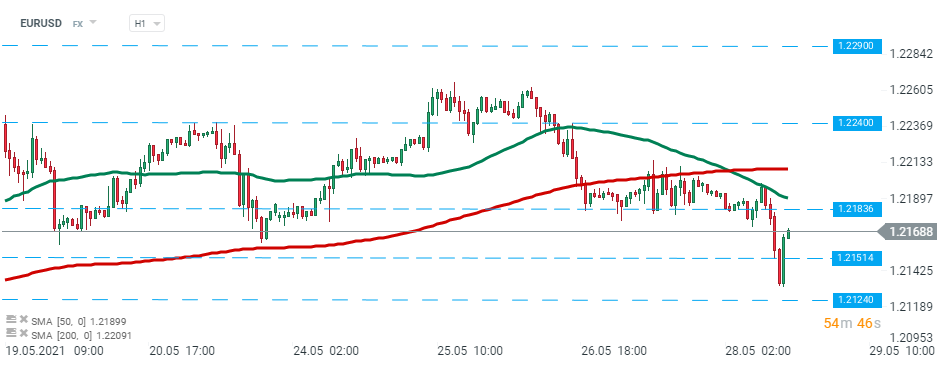ارتفع زوج EURUSD قليلاً بعد صدور بيانات اليوم ويتجه نحو مستوى المقاومة عند 1.2183. المصدر: xStation5